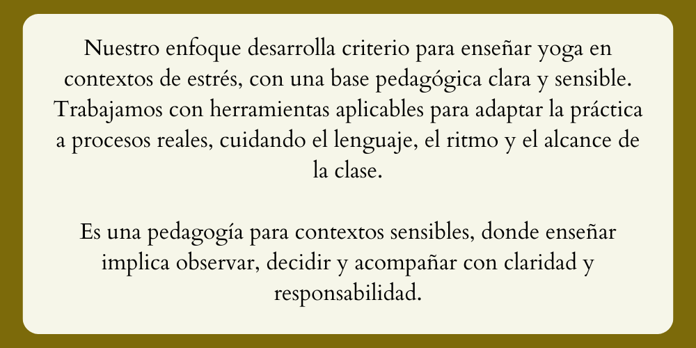🔸 Criterio para trabajar con estrés: se integran conocimientos de yogaterapia, prácticas somáticas y comprensión del estrés para tomar decisiones más informadas dentro de la clase